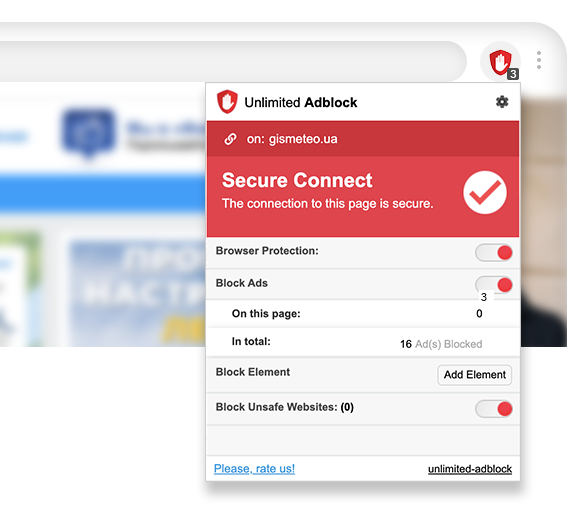 Blocks all ads including Youtube video ads enables you to know the security status of a website. The extension not only helps you access the content without ads but also secure browsing.